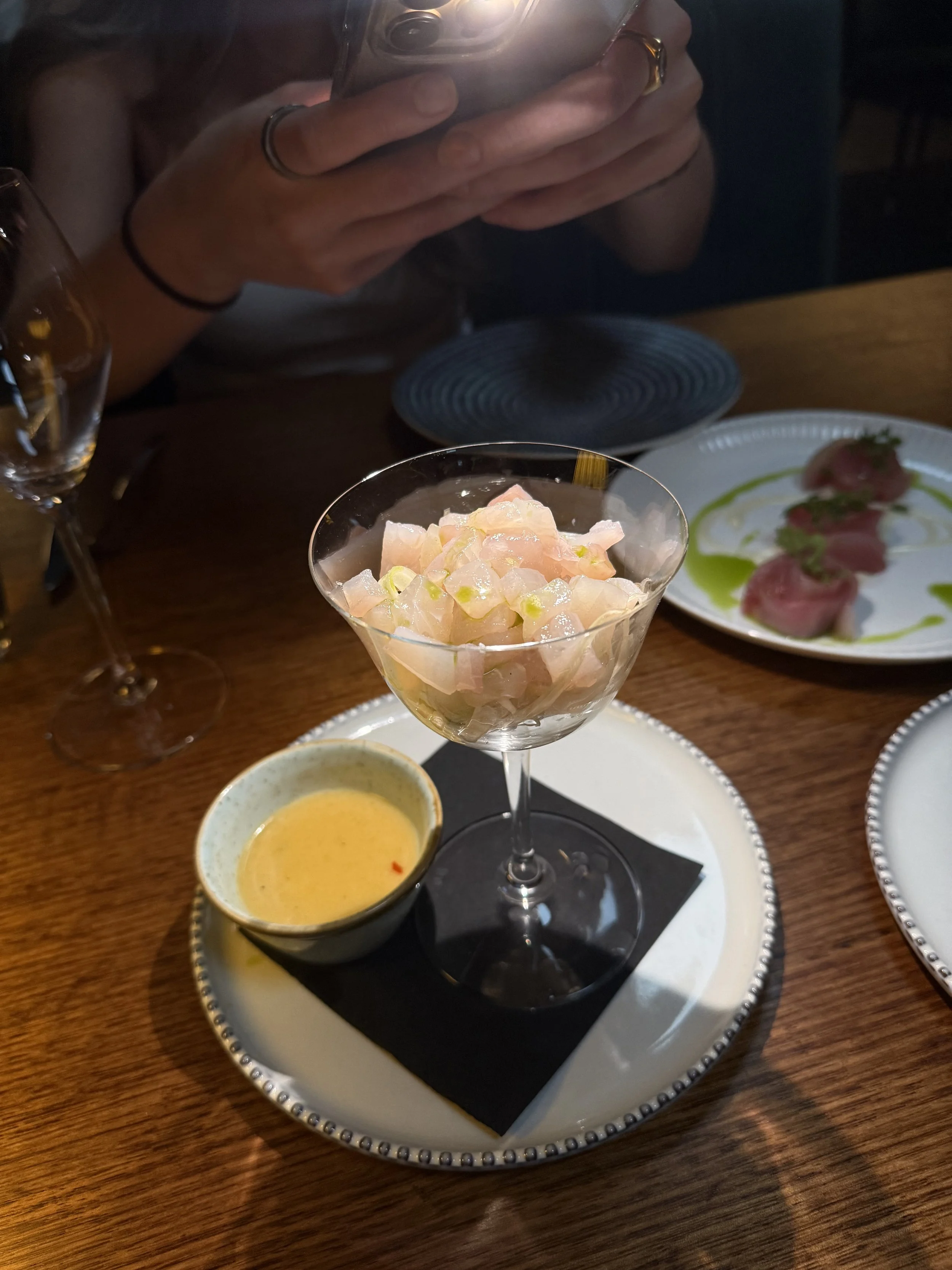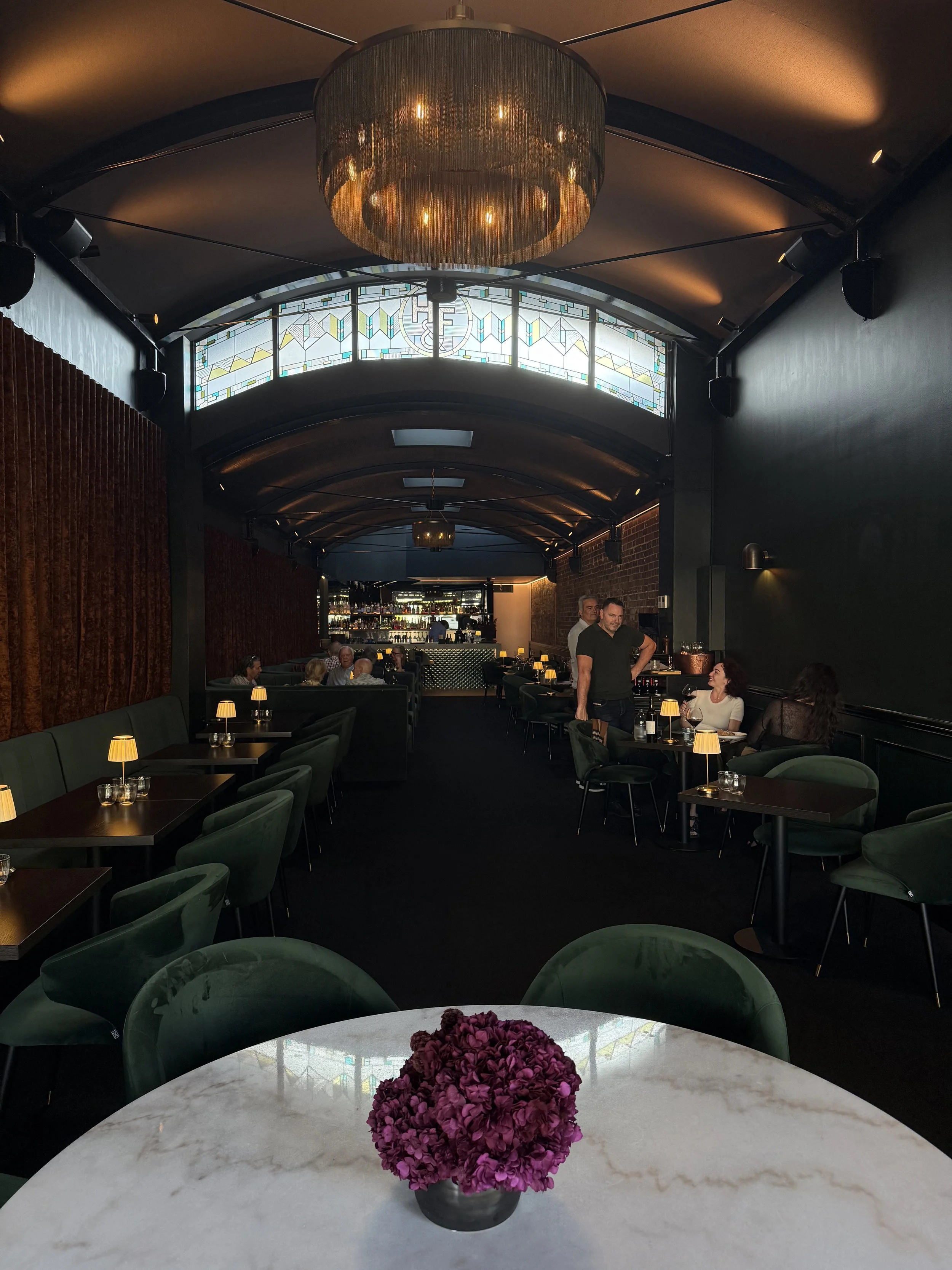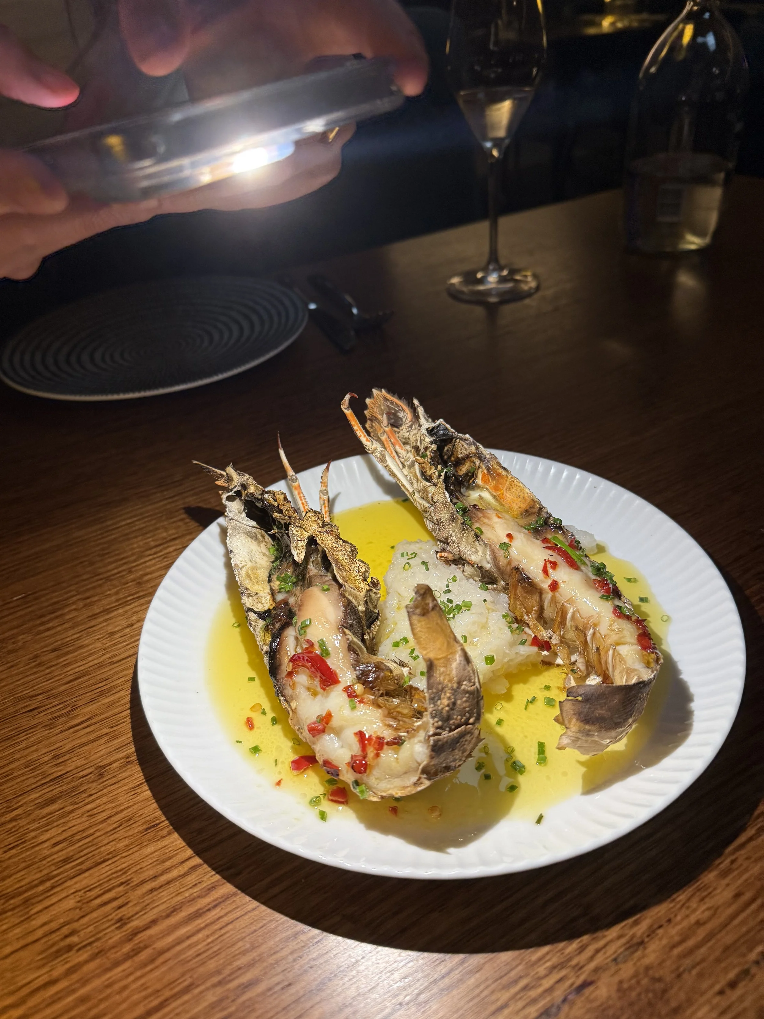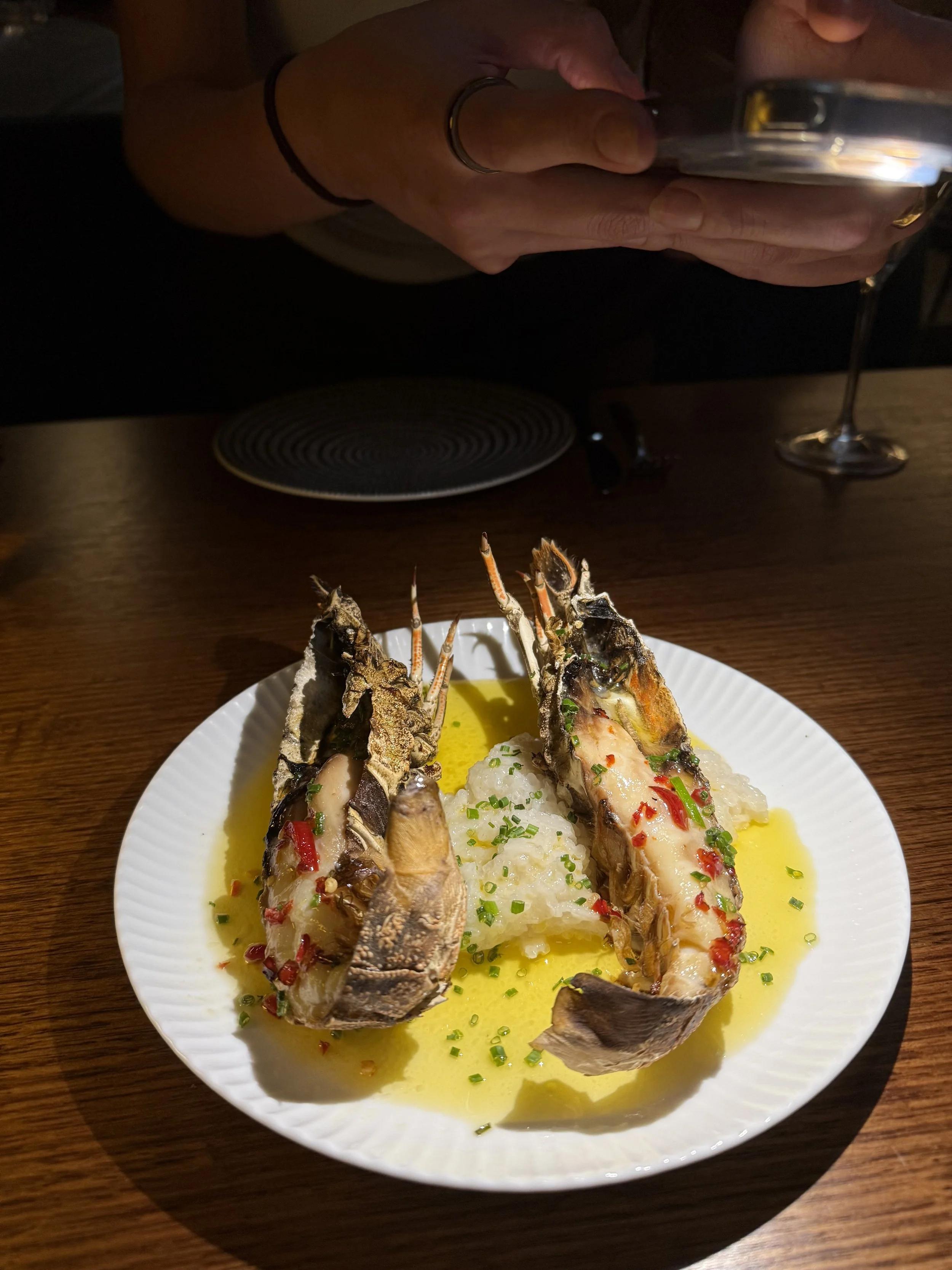 It’s hard to know where to start. We had some incredible entree’s starting with, Morton Bay bugs which are topped with garlic & chilli. A lovely fresh fish, cubed, on a bed of lettuce with mothers’ milk & a citrus sauce, this was unbelievable. We had a go at the kingfish crudo & the anchovy toast too, which H absolutely loved. There are 3 sauce options on offer with the steak, red wine jus, creamy pepper or bearnaise. H’s personal fav was the peppercorn; Mads was the jus. We also were treated to some of the best chippies we’ve had & the freshest salad we’ve had. H also indulged in the mac & cheese which was unbelievable and worth the cals.